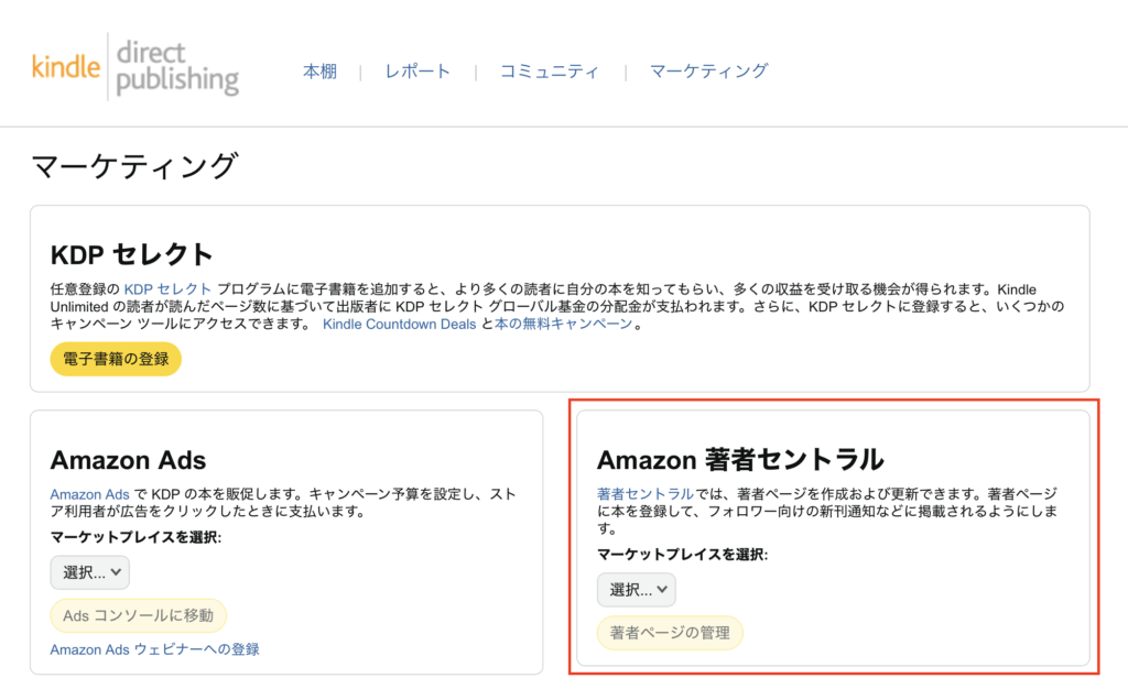 Amazon広告を利用するには、まず「著者セントラル」に登録しておく必要があります。
